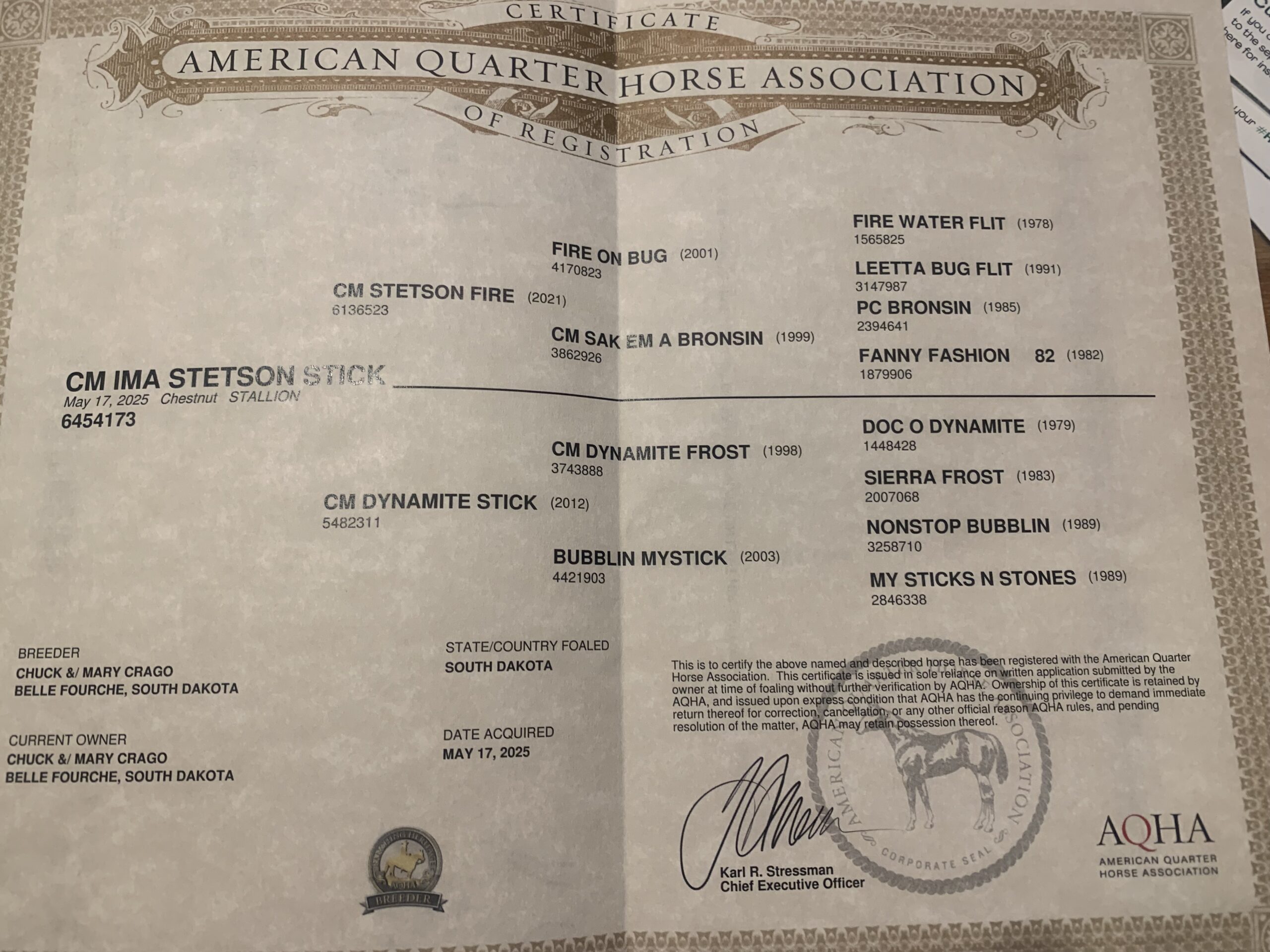 - Registered Name: 2025 CM Stetson Fire x CM Dynamite Stick