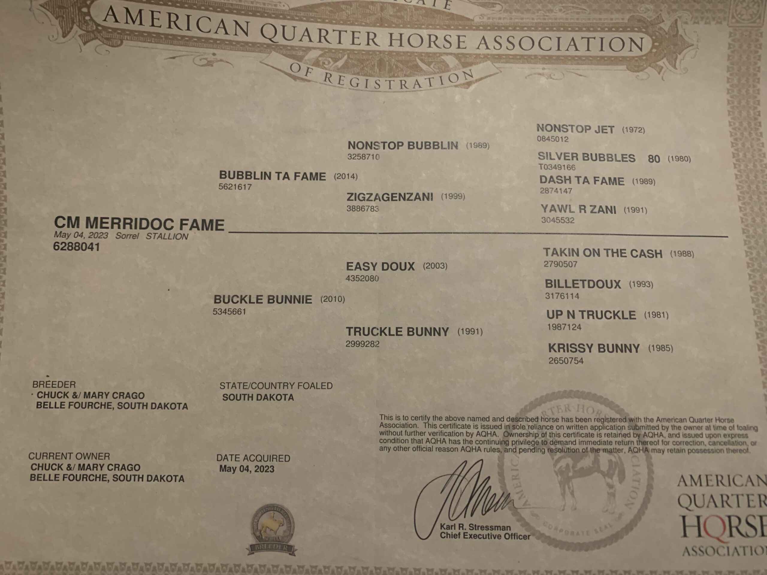 Bubblin Ta Fame ~ Sired by Multiple Barrel Champion/Superior AQHA Barrel Horse NONSTOP BUBBLIN ($85,000+, 117.5 AQHA Barrel Racing Points), Barrel Sire of earners over $400,000! Half-brother to Multiple Futurity Champion & Turquiose Circuit Qualifier PLAYGUNS FAME ($50,000+) ridden by Jessie Telford and Barbara Johnson! 1st Dam is Multiple Barrel Champion Producer Zigzagenzani si 87 by the All-Time Leading Barrel Sire DASH TA FAME, si 113 ($290,812, Ntr). 2nd Dam is Grade 2 Stakes Placed Yawl R Zani si 87 ($14,036), full-sister to Stakes Placed BF First Lien si 100 ($67,959, dam to Stakes Winner AS TAKIN FIRST si 105, $161,354)