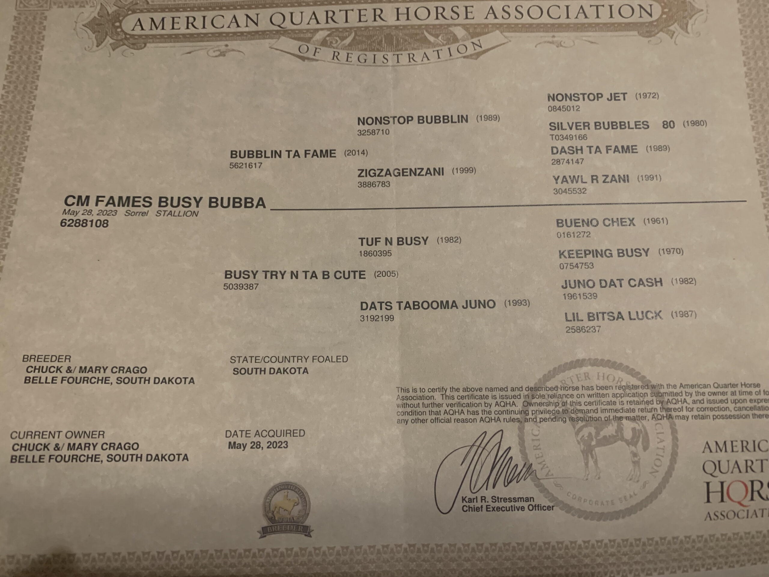 • Registered Name: CM Fames Busy Bubba