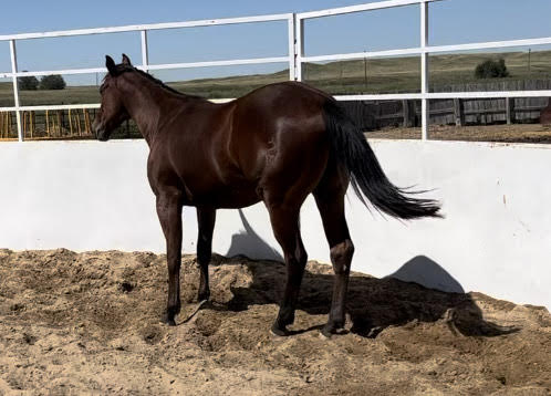 Bay filly , she was born late last year. Her dam has been a great producer for us. Several winners in the barrels and in the roping. Paid into FF and The breeders Challenge Eligible to be paid in to The Diamond Classic, roping and barrels. Eligible to run at The Colorado Classic, Vgbra, C-N Sire: Bubblin Ta Fame ~ Bubblin Ta Fame Sired by Multiple Barrel Champion/Superior AQHA Barrel Horse NONSTOP BUBBLIN ($85,000+, 117.5 AQHA Barrel Racing Points), Barrel Sire of earners over $400,000! Half-brother to Multiple Futurity Champion & Turquiose Circuit Qualifier PLAYGUNS FAME ($50,000+) ridden by Jessie Telford and Barbara Johnson! 1st Dam is Multiple Barrel Champion Producer Zigzagenzani si 87 by the All-Time Leading Barrel Sire DASH TA FAME, si 113 ($290,812, Ntr). 2nd Dam is Grade 2 Stakes Placed Yawl R Zani si 87 ($14,036), full-sister to Stakes Placed BF First Lien si 100 ($67,959, dam to Stakes Winner AS TAKIN FIRST si 105, $161,354) Dam : CM Frosted Tivio Dam of CM Siennas Firefrost, 7th in the Christmas Cash Juvenile Futurity in her Futurity Debut! 3/4 Sister to Montana Circuit Finals Qualifer/ Multiple Rodeo and 1D Winner CM Dynamite Miss Tiv. Sired By CM Dynamite Frost: -2010 Region 2 AQHA Senior Heading Champion & Senior Heeling Reserve Champion, 2009 AQHA Region 2 Senior Heading Reserve Champion & Heeling Reserve Champion -National Reined Cow Horse Money Earner CM Dynamite Frost has sired Barrel Racing earners over $100,000 Including CM Dynamite Shake $40,000+, CM Bubblin Dynamite $24,000+, Lil Frost Freckles, $23,000+, CM Dynamite Miss Tiv $23,000+, and more! Maternal Grandsire is 2001 Top 25 NRCHA Sire Taylor Jess Tivio, Sire of 182 AQHA Points!